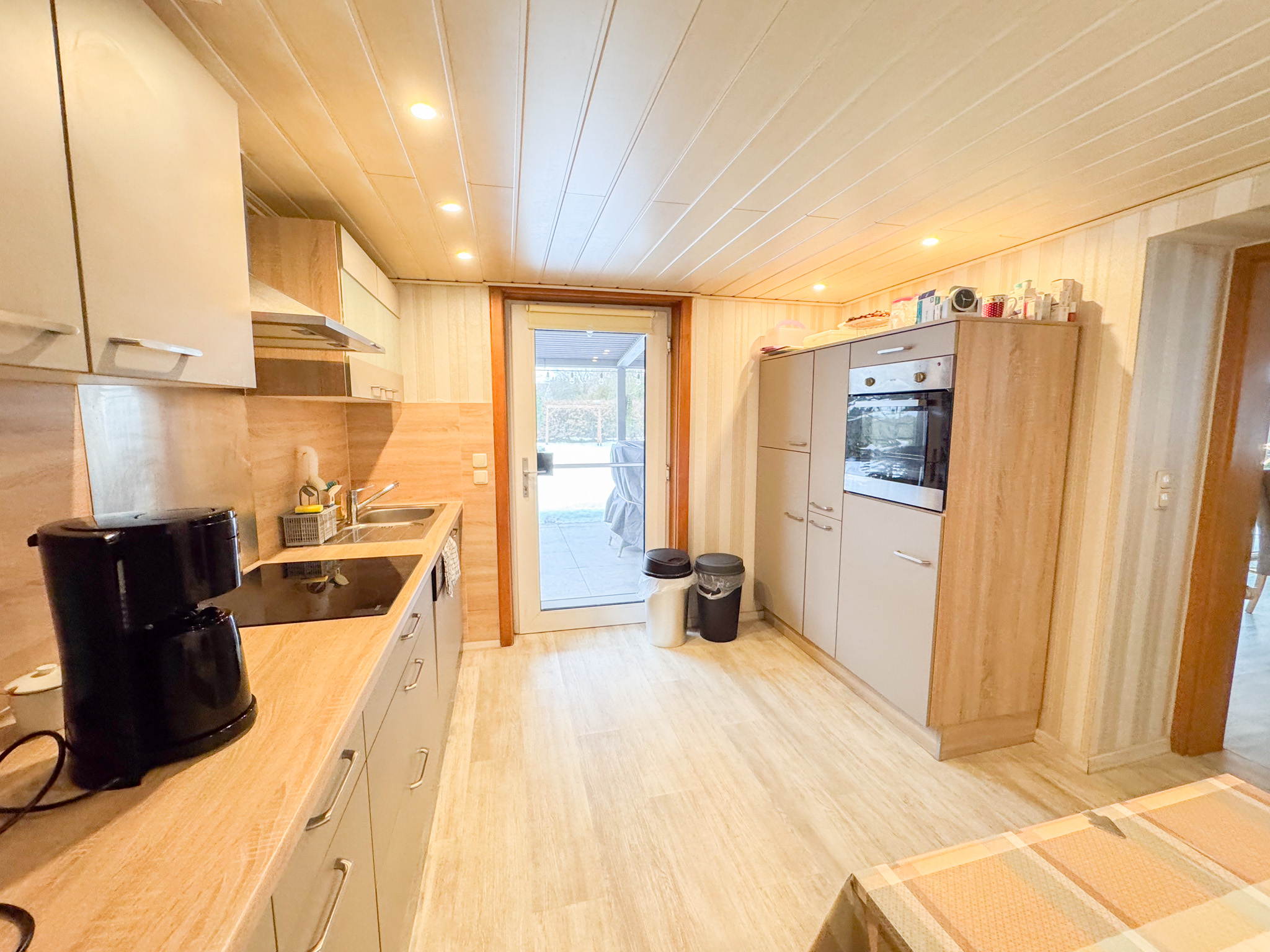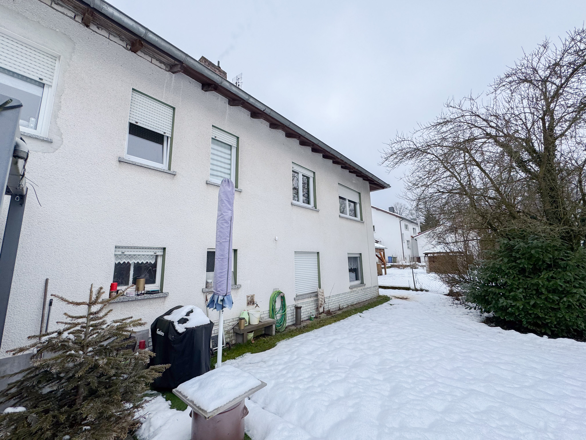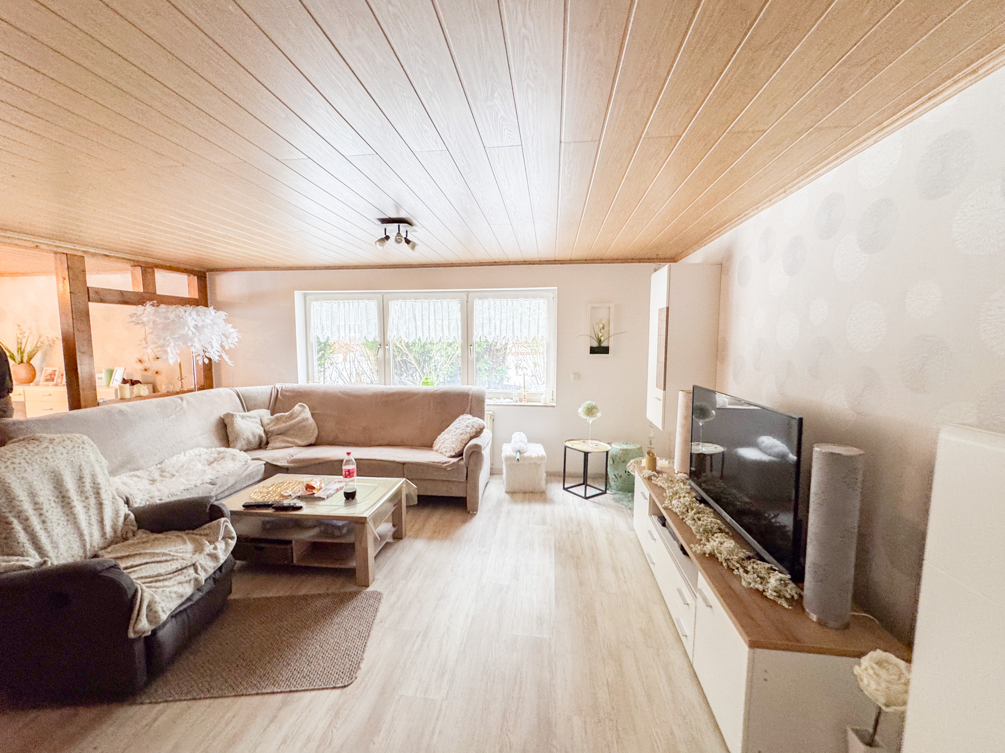 Diese 2-geschossige Erdgeschosswohnung überzeugt mit einer großzügigen Wohnfläche von ca. 148 m², die sich harmonisch auf fünf Zimmer verteilt und vielseitige Nutzungsmöglichkeiten bietet. Bereits beim Betreten empfängt Sie ein einladender Flurbereich, von dem aus nahezu alle Räumlichkeiten komfortabel erreichbar sind. Auf der linken Seite der Wohneinheit befinden sich drei gut geschnittene Zimmer, die sich ideal als Schlaf-, Kinder- oder Arbeitszimmer eignen und somit flexibel auf Ihre Lebenssituation abgestimmt werden können. Ein Gäste-WC mit Tageslicht ergänzt diesen Bereich. Darüber hinaus steht Ihnen auf dieser Etage ein weiteres Tageslichtbad mit Dusche und WC zur Verfügung. Das Herzstück der Wohnung bildet der offen gestaltete Wohn- und Essbereich mit angrenzender Küche. Hier entsteht eine angenehme Wohnatmosphäre mit viel Raum für gemeinsame Zeit mit Familie und Freunden. Die moderne Einbauküche wurde erst vor ca. sechs Jahren installiert und ist funktional wie auch optisch ansprechend ausgestattet. Von hier aus gelangen Sie auf die beeindruckende, ca. 60 m² große, überdachte Terrasse – ein idealer Ort zum Entspannen, für gesellige Abende oder sommerliche Grillrunden. Der gemeinschaftlich genutzte Garten erweitert den Wohnraum ins Grüne und schafft zusätzlichen Erholungswert. Eine Treppe im Wohnbereich führt in das Obergeschoss. Dort erwarten Sie zwei weitere gut geschnittene Schlafzimmer sowie ein Duschbad mit attraktivem Oberlicht, das für eine helle und freundliche Atmosphäre sorgt. Komplettiert wird dieses attraktive Angebot durch einen praktischen Abstellraum innerhalb der Wohnung inklusive eigener Heizungsanlage. Zwei Außenstellplätze direkt vor dem Haus bieten zusätzlichen Komfort im Alltag. Aufgrund der kleinen Eigentümergemeinschaft besteht derzeit keine Instandhaltungsrücklage und es ist keine Hausverwaltung eingesetzt – eine überschaubare Struktur mit direkter Abstimmung unter den Eigentümern.